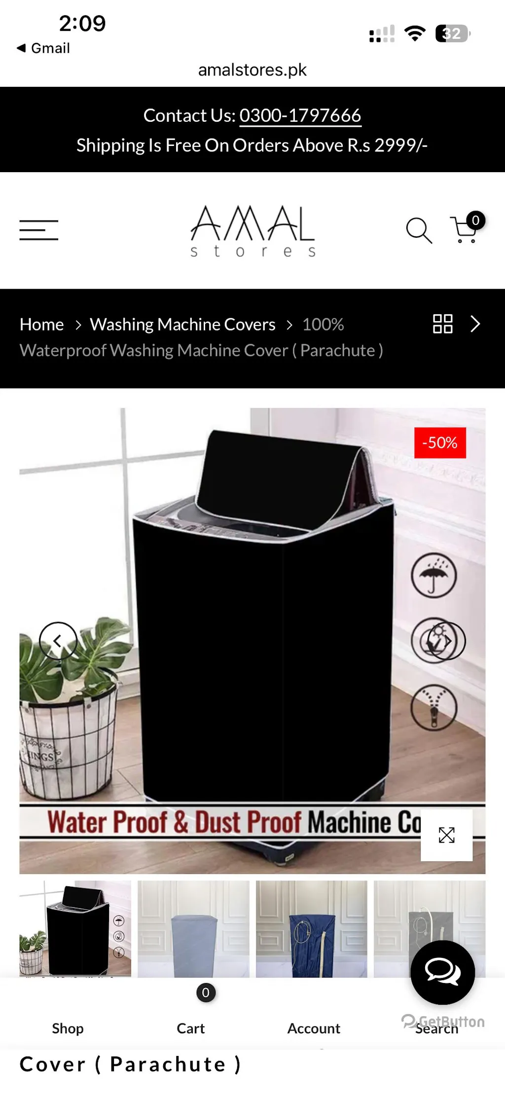 100% Waterproof Washing Machine Cover ( Parachute )
